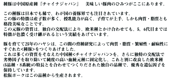 松阪ポークの美味しさと健康の理由は、種豚の違いです。